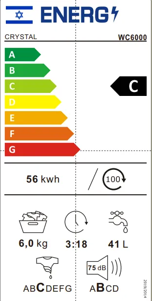 מכונת כביסה פתח עליון 6 ק"ג דגם WC6000 קריסטל CRYSTAL