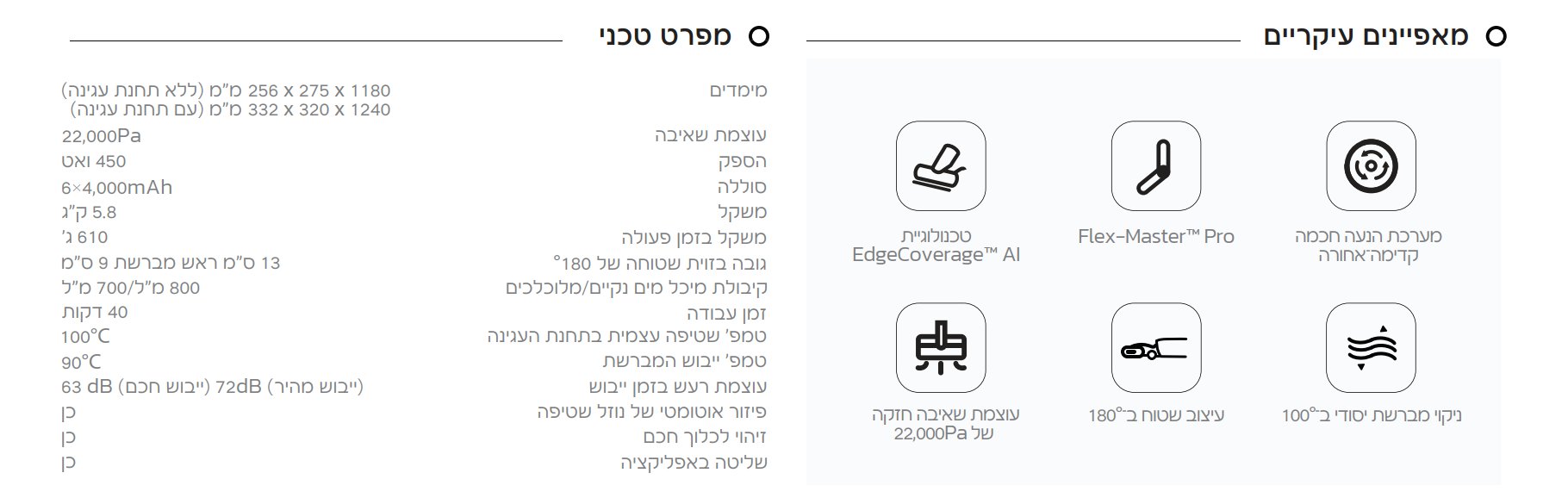 עוצמת שאיבה: 22,000Pa