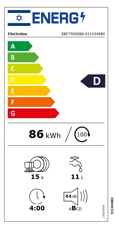 מדיח כלים אינטגרלי מלא דגם EBF7500SBA אלקטרולוקס Electrolux
